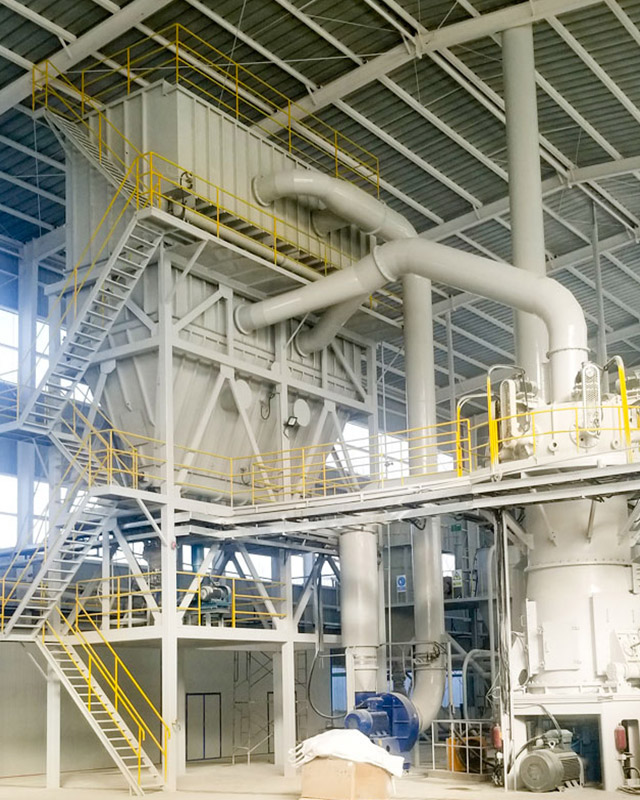 主電機通過減速機帶動磨盤轉(zhuǎn)動,物料經(jīng)螺旋輸送機進入立磨主機內(nèi),受重力作用落到磨盤中央,同時風(fēng)機產(chǎn)生的氣流從進風(fēng)口進入主機。在離心力的作用下,物料從磨盤中央向邊緣均勻移動,經(jīng)過磨盤上的輥道時,受磨輥碾壓,大塊物料直接被壓碎,細(xì)物料受擠壓后形成料層,進行粒間粉碎。粉碎后的物料繼續(xù)向磨盤邊緣移動,直到被磨盤外圍的風(fēng)口環(huán)引導(dǎo)的強氣流向上帶走,較粗的物料由于自身重力原因重新落回至磨盤內(nèi),進行再次碾磨;較細(xì)物料則隨氣流上升進入主機上方的分級系統(tǒng)進行篩選分級,在分級轉(zhuǎn)子葉片的作用下,較粗的物料不能被通過,而被葉片重新打落活磨盤內(nèi)再次碾磨,合格的細(xì)粉將隨氣流帶出分級系統(tǒng),通過外部管路進入除塵系統(tǒng),然后經(jīng)除塵器將氣流與物料分離、收集后,即為成品。另外,物料中的雜物及大顆粒物料會在研磨時,被刮料板刮入排渣口,排出磨體,從而有效的保證了成品的質(zhì)量。此外還可通過調(diào)節(jié)液壓系統(tǒng)的壓力,來調(diào)節(jié)磨輥的壓力,在一定范圍內(nèi)可適應(yīng)不同硬度的物料需求;通過調(diào)節(jié)多轉(zhuǎn)子分級系統(tǒng)的轉(zhuǎn)子轉(zhuǎn)速,來調(diào)節(jié)分級篩選細(xì)度,從而獲得多種不同規(guī)格的合格成品。